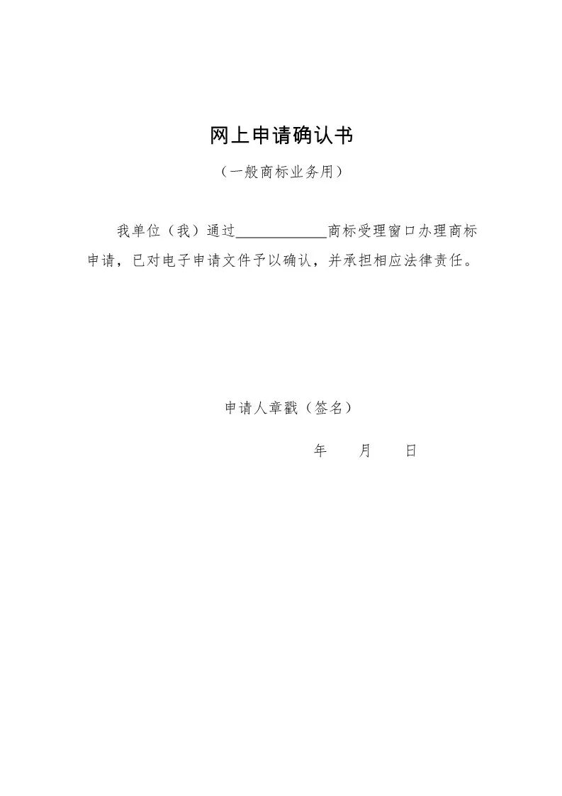网上申请确认书 一般商标业务用.docx