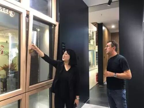 随后,卢卡斯教授来到米兰之窗总部基地,在米兰之窗董事长马俊清、米兰之窗执行总裁陈涛、中国建筑学会室内设计分会理事、山西省十大杰出设计师武俊文的陪同下共同参观米兰之窗VMD展厅,并就门窗的时尚与设计展开了一场精彩的对话。