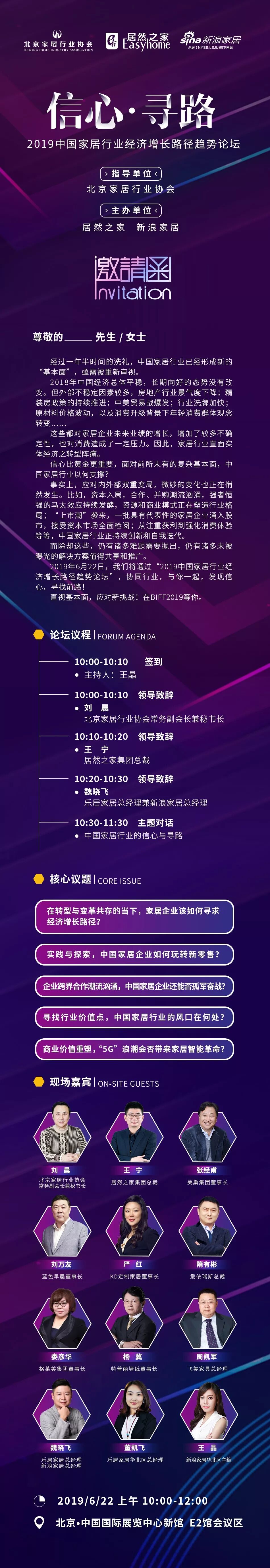 2019年6月22日,我们将通过“2019中国家居行业经济增长路径趋势论坛”,协同行业,与你一起,发现信心,寻找前路!