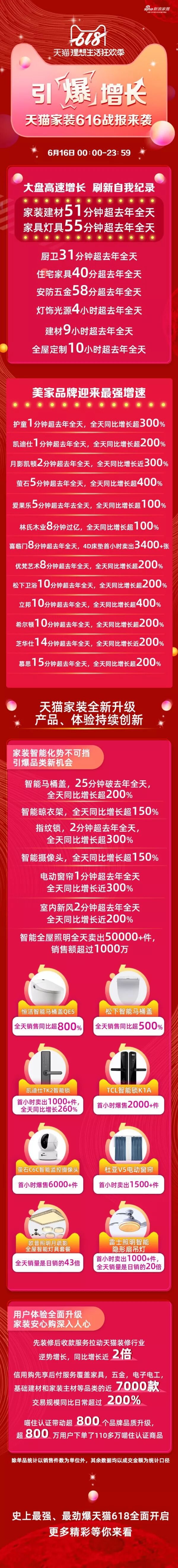 据天猫数据显示,6月16日,厨卫、家具、建材、灯具、全屋定制等家居行业销量整体爆发增长,全面刷新去年的销售记录。