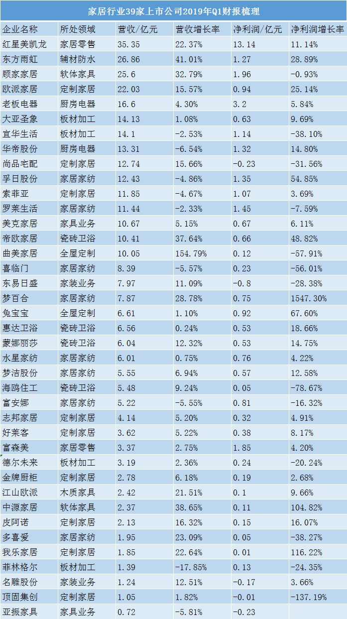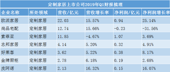 超八成家居企业营收增速低于25%,2019年Q1定制、家纺、卫浴行业走势如何?