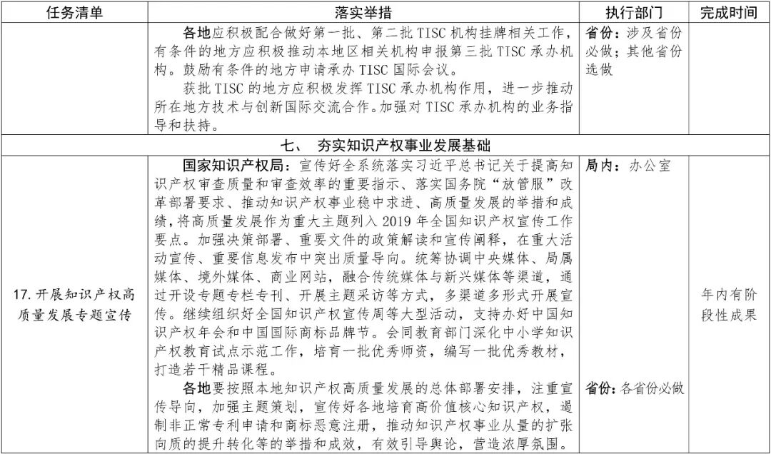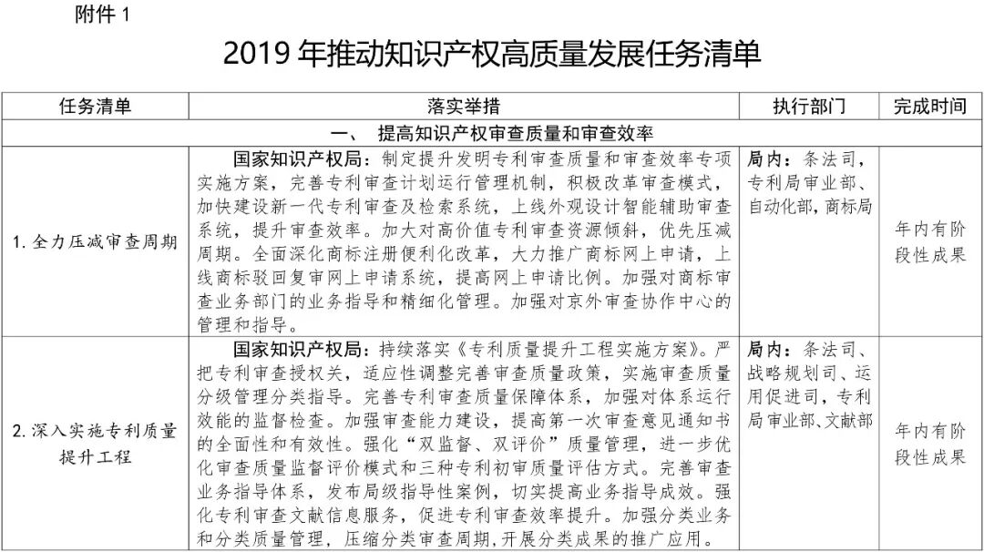 刚刚!国知局发布2019推动知识产权高质量发展任务清单(附分类表)
