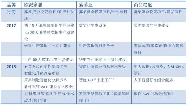 除了在智能家居应用领域上的合作,未来,家电与定制企业在智能制造方面也有望获得突破。定制家居第一梯队的三家上市企业过去两年在智能生产线及数字化改造上均有所投资。