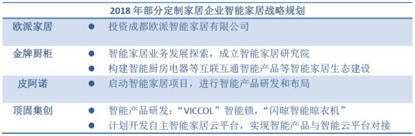 不仅是索菲亚,整个定制家具行业都在努力向智能家居业务进行延伸。2018年政府工作报告中提出“发展智能产业,拓展智能生活”,而后5G和人工智能技术也逐渐发展,智能家居在场景设计和定制上的需求成为定制家居迎来的一大机遇。