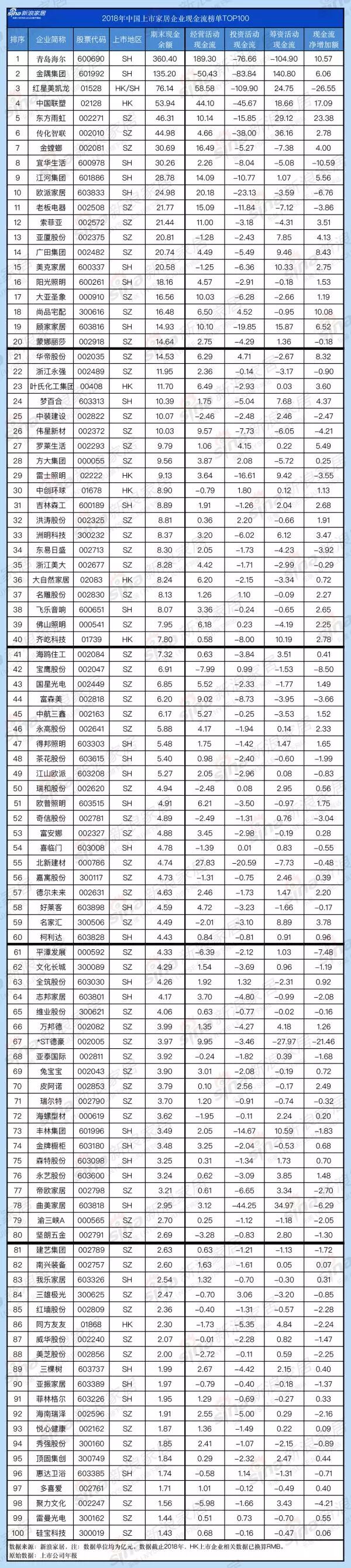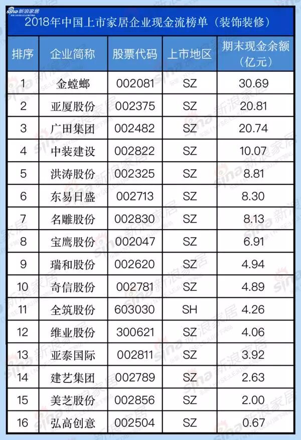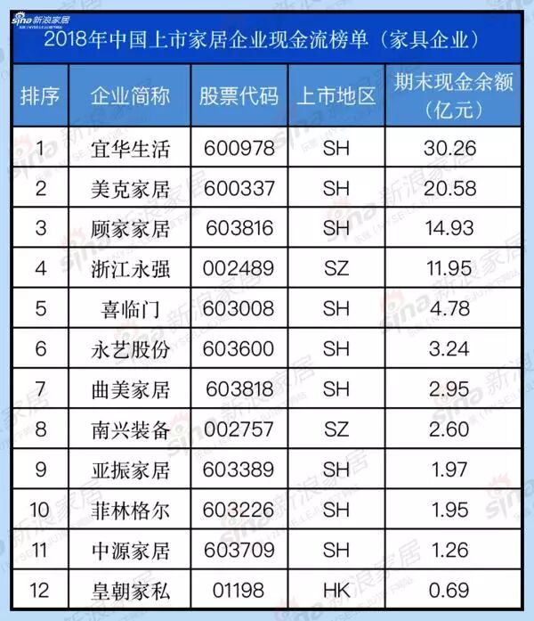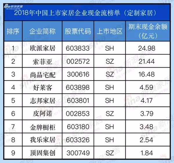 能赚钱=有钱吗?2018年家居企业现金流榜单TOP 100 | 独家