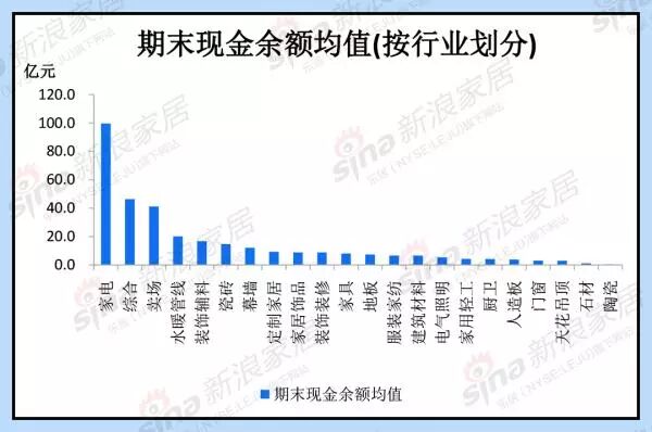 新浪家居收集超过120家家居上市企业,根据行业划分得出各行业期末现金余额均值。