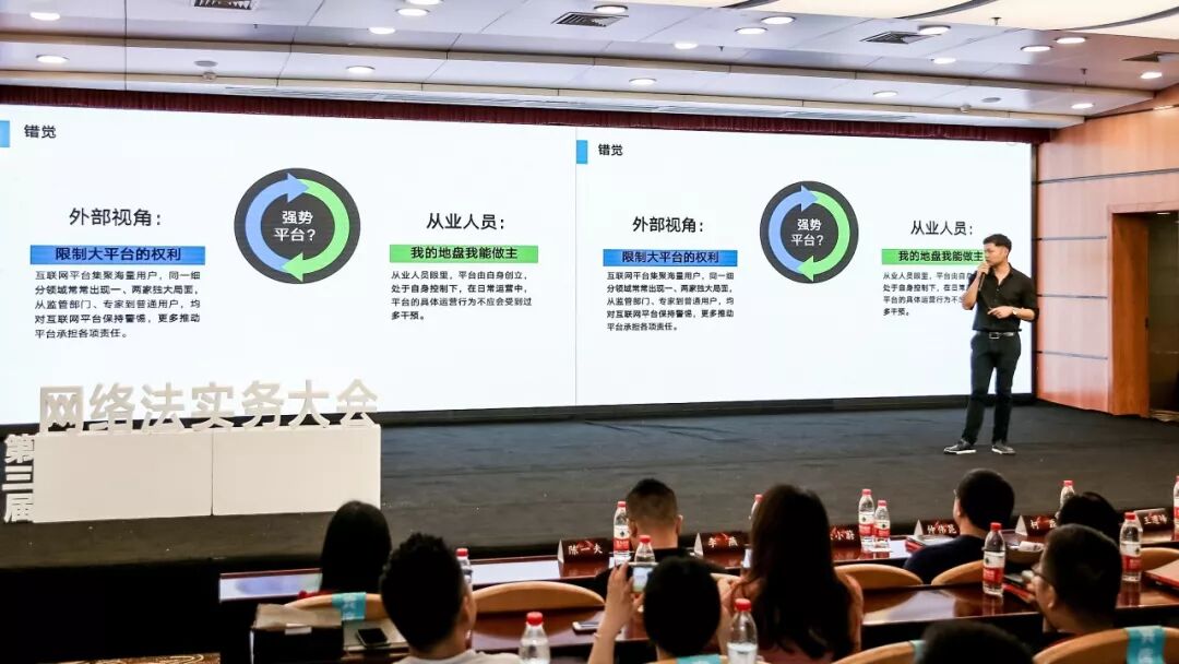 腾讯法律诉讼中心总监胡迎春站在平台方的角度,从竞争法视角看互联网平台权利,认为平台自身的运营及策略应当得到尊重,享有自主经营权。