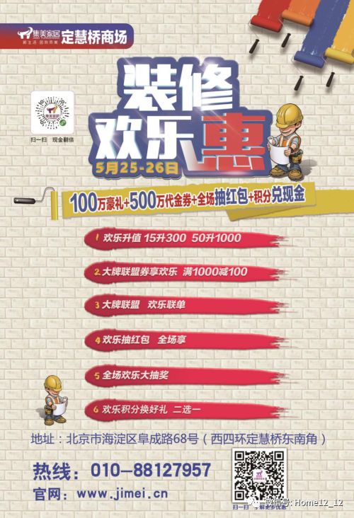 正是看准了这个时机,集美家居定慧桥商场在5月25-26日重磅推出“装修欢乐惠”酬宾营销活动,并有一系列的优惠大礼奉上。如果您家也在计划或已经开始装修,最近不妨来集美家居定慧桥商场逛逛。