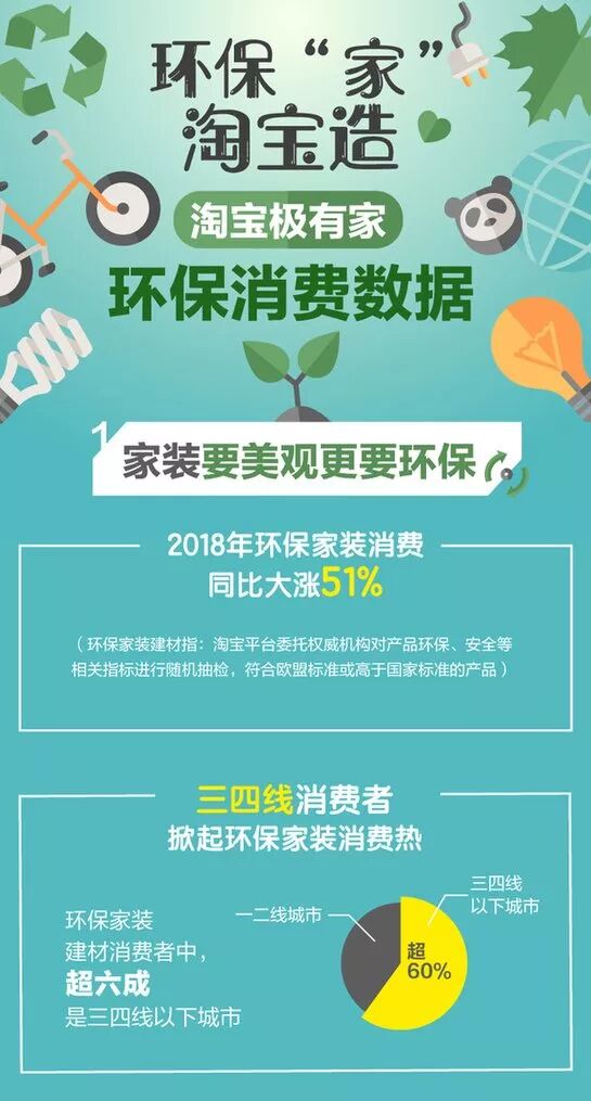 作为全球第一家居平台,淘宝极有家引领的环保热潮表明,越来越多的人正在用消费保护地球,打造舒适家居生活的同时,更注重人与环境的和谐相处;这也显示,在三四线地区,淘宝上的绿色环保家居用品正成为第一选择,低质、劣质家装建材快速退出市场。