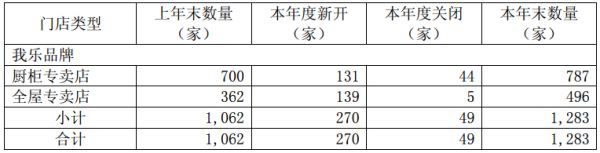 全屋定制业务增长迅猛,我乐家居全国门店总量增至1283家。