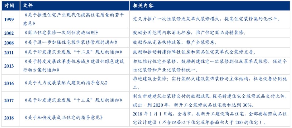 住宅精装修相关政策(1999-2018年)