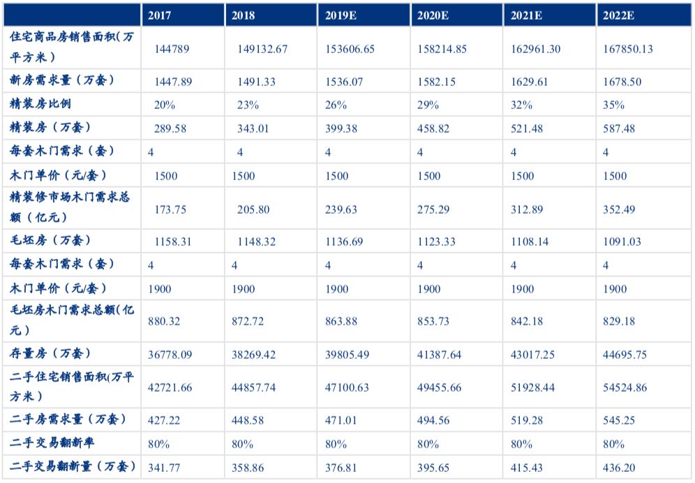 木门行业需求规模估算(2019-2022年)