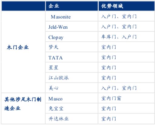 木门行业重点企业比较