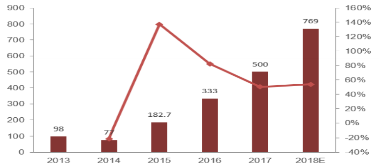 2007-2017年中国木门市场规模变化