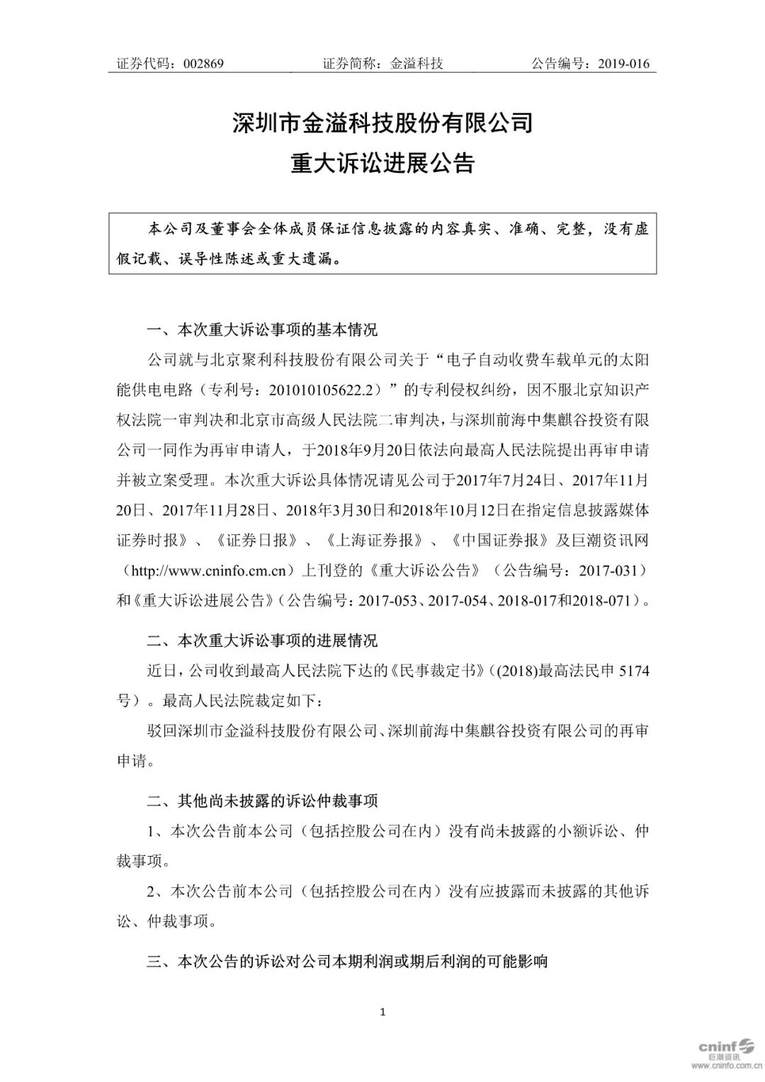 附:深圳市金溢科技股份有限公司重大诉讼进展公告(全文)