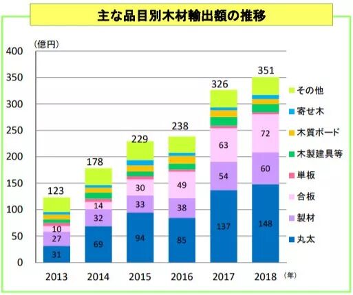 3月5日,《日本经济新闻》报道称,日本农林水产省公布的资料表明,2018年日本对外国木材出口总额达到了350.7亿日元(约合人民币21.05亿元),比2017年增长7.4%。其中对中国出口木材总额为158亿日元,比2017年增长9.3%。