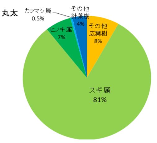 占比从大到小分别为“杉木”、“其它阔叶树”、“扁柏”、“其它针叶树”和“日本落叶松”