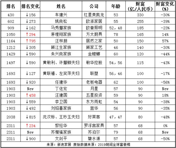 2019胡润全球富豪榜单揭晓,18位家居企业家上榜