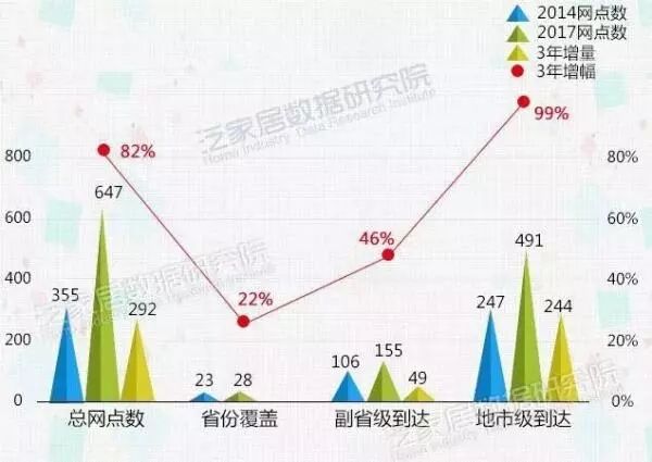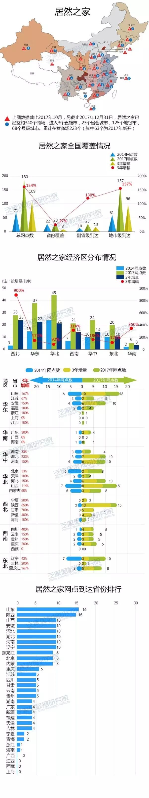 特别说明:因调查期间企业拓展迅猛,本报告纳入分类统计的数据截止2017年年中,除港澳台和西藏、上海外居然之家实现了28个省份的广覆盖。