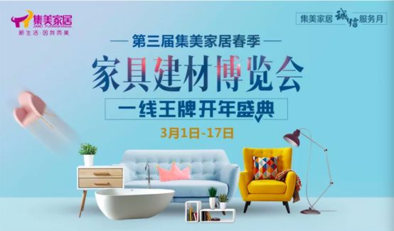 第三届“诚信服务月”期间,集美家居将推出丰富多彩的促销活动。2019年2月26日-3月3日,3月8日-14日,消费者关注集美家居小程序,每天15:00、20:00可准时抢购15元升300、50元升1000升值券。
