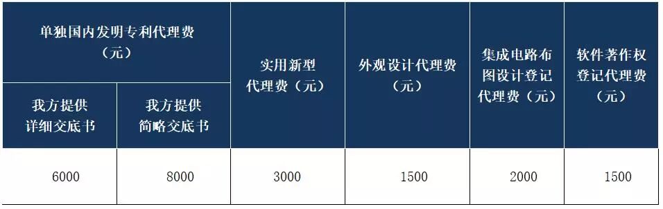 3、专利代理各项费用参考收费标准: