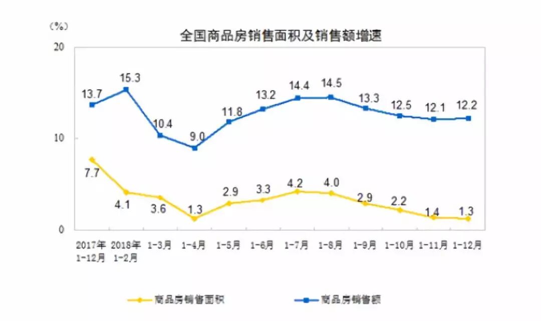 从2018年3月,两会政府工作报告强调“房子是用来住的”,实行差别化调控,到7月,中央政治局会议提出“坚决遏制房价上涨”,房地产调控政策不断趋紧,商品房价量增长均出现回落。据国家统计局数据显示,2018年,商品房销售面积171654万平方米,比上年增长1.3%,商品房销售额149973亿元,增长12.2%。