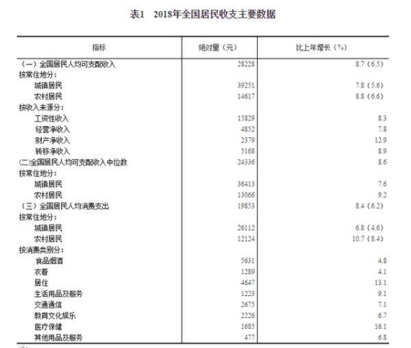 (2018年全国居民收支主要数据,其中“全国居民人均消费支出”中,