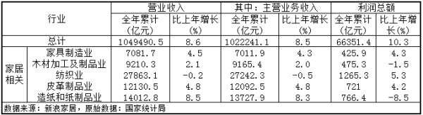 2018年家具制造业营收同比增长4.5%,全年利润同比增长4.3%。