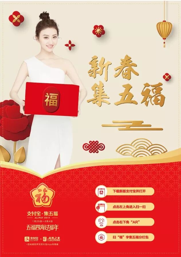 AR扫“福”字:1月25日起,打开新版支付宝app,点击左上角扫一扫,切换到右下角“AR”,扫你周围任意一个“福”字,get√
