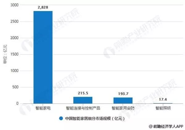 2017年中国智能家居细分市场规模统计情况