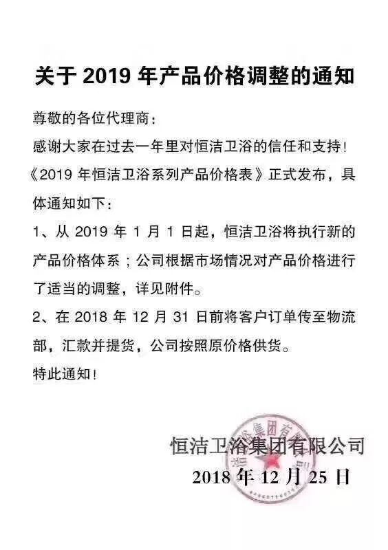 而最近,卫浴妹的朋友圈“疯传”一些品牌的“涨价通知”,例如恒洁的: