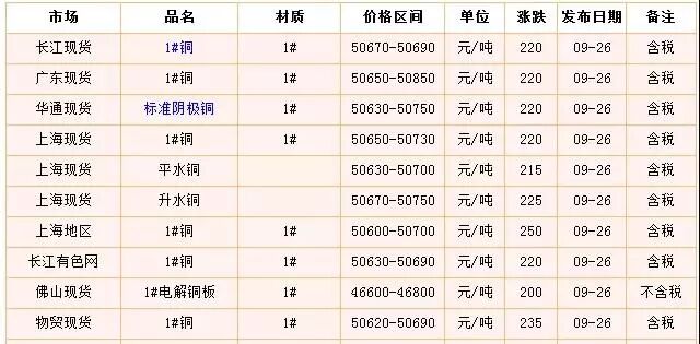 而受国内外铜生产地的影响,铜价在2018年5月还在50100元/吨徘徊,8月前后经历两次小幅度涨价,涨幅为200元/吨。9月末,长江现货铜价为50670元/吨,广东现货为50650--50850元/吨,较数日前涨逾250—300元/吨,较年初涨逾800—1000元/吨。