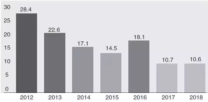 2018年调查数据显示,我国专利权人遭遇专利侵权的比例为10.6%,较上年下降0.1个百分点,是2012年以来的最低水平。《报告》表明,我国专利保护环境持续向好,整体专利侵权比例继续下降,专利侵权判赔力度有所加大,专利权人维权意识显著提升。