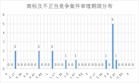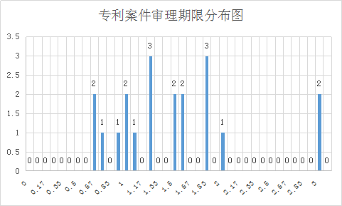 通过进行统计分析,其中案件平均审理期间为1.54年,最短为0.17年,最长为3年,具体如下图所示: