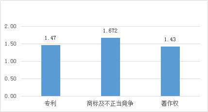 专利案件审理平均需要1.47年、商标及不正当竞争案件的审理需要1.67年,著作权案件(均为计算机软件)的审理需要1.43年,具体如下表和图所示: