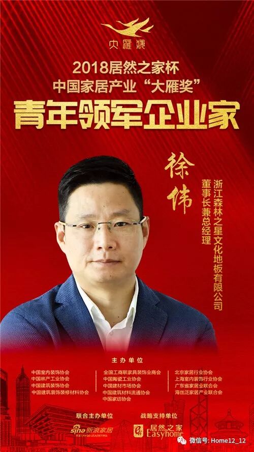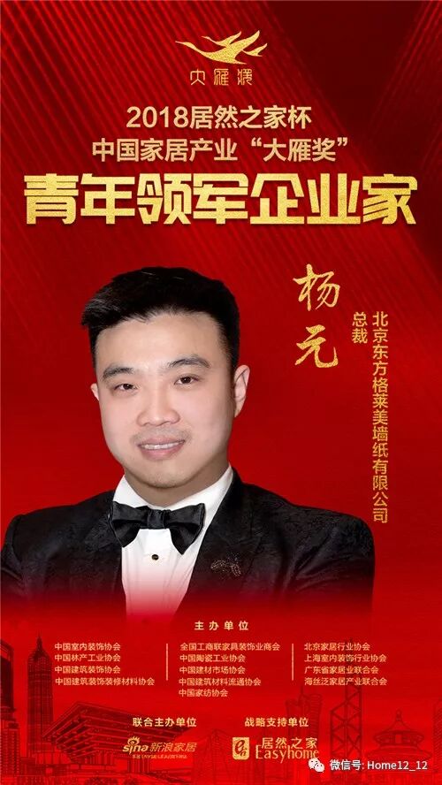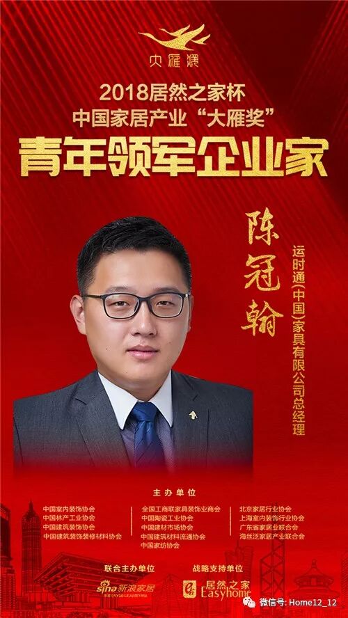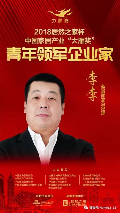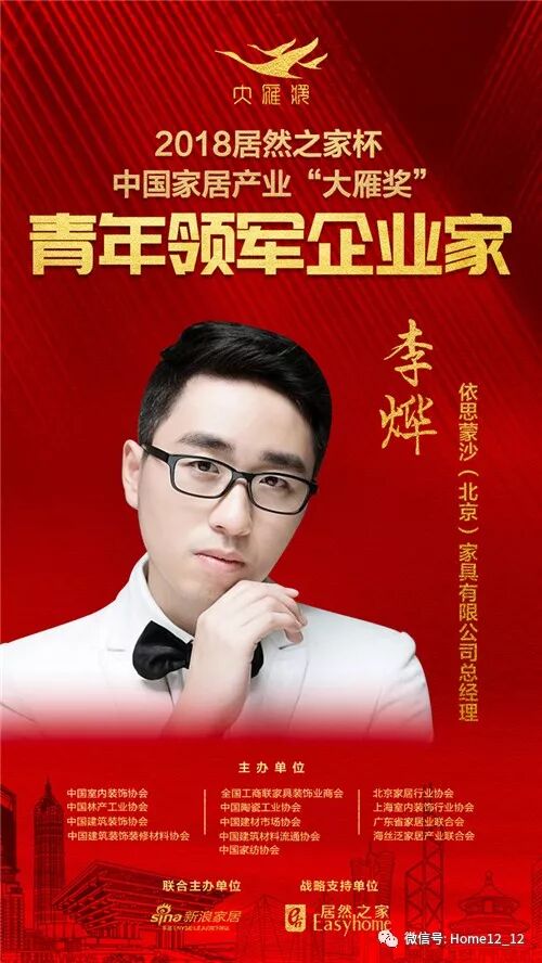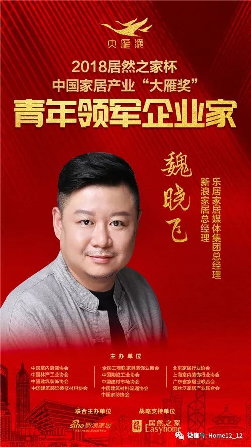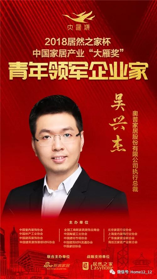 2019年1月6日,在北京国家会议中心举行的第六届中国家居产业发展年会暨中国家居产业领袖峰会现场,2018“居然之家杯”中国家居产业“大雁奖”青年领军企业家榜单揭晓。