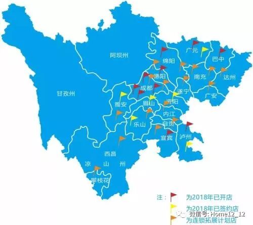 在四川,截至2018年居然之家在四川已成功签约绵阳二店、成都双流店、成都新津店、内江隆昌店、德阳广汉店、南充阆中店、泸州古蔺店、宜宾筠连店、宜宾江安店、达州大竹店、广安邻水店、南充营山店、泸州合江店、巴中通江店、乐山夹江店等15家店,签约店总数已达31家。