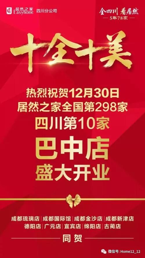 12月30日,居然之家全国第298家门店,四川分公司第10家分店——居然之家巴中店盛大开业!