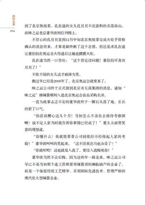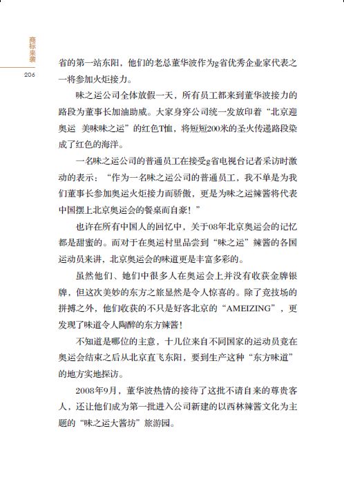 本节的内容是“味之运”牌辣酱顺利入选北京奥运会食品采购名录,老总董华波参加北京奥运会火炬传递,“味之运”辣酱借机奥运会大打宣传牌收效显著。