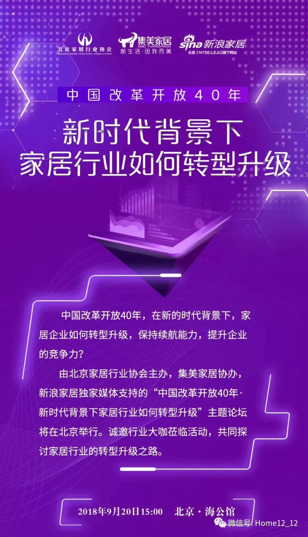 在消费升级和新零售的双重作用下,家居企业该如何转型升级以保持企业的续航能力、提升竞争力?9月20日,“中国改革开放40年·新时代背景下家居行业如何转型升级”主题论坛将在北京举行,届时行业大咖将齐聚现场,共同探讨家居行业的转型升级之路。