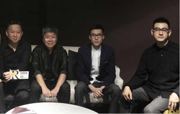 荣麟家居总裁戚麟(左1)、国际知名设计师梁建国(左2)、著名新锐设计师周宸宸(右1)、资深品牌设计师魏明辉(右2)
