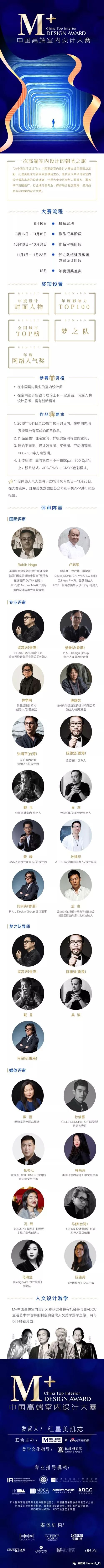 2018“M+中国高端室内设计大赛”是大中华区参与人数最多、覆盖城市范围最广、行业细分最专业、媒体联合程度最高、最具品质效应的室内设计大赛,由国内外最具影响力的14位当代设计大咖亲自坐镇,近10家全球最具权威性的国际设计机构及协会组织联袂巨制。