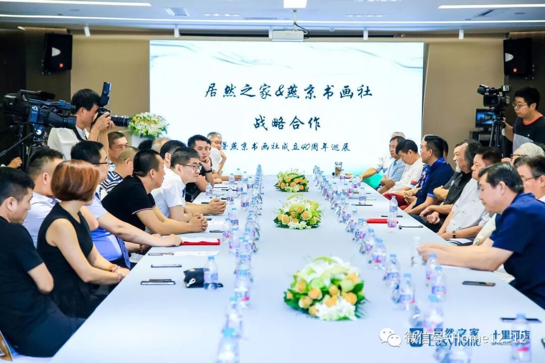 8月12日,“原创艺术家-燕京书画社”战略合作签订仪式在北京居然之家十里河店召开,活动当天,“燕京书画社”成立40周年巡展活动《名家精品展》也随之开幕。居然之家家居连锁集团总裁王宁表示,居然之家与燕京书画社达成战略合作有助于双方共同推进社会文化产业繁荣、满足艺术品消费需求,让更多的原创艺术走进千家万户。