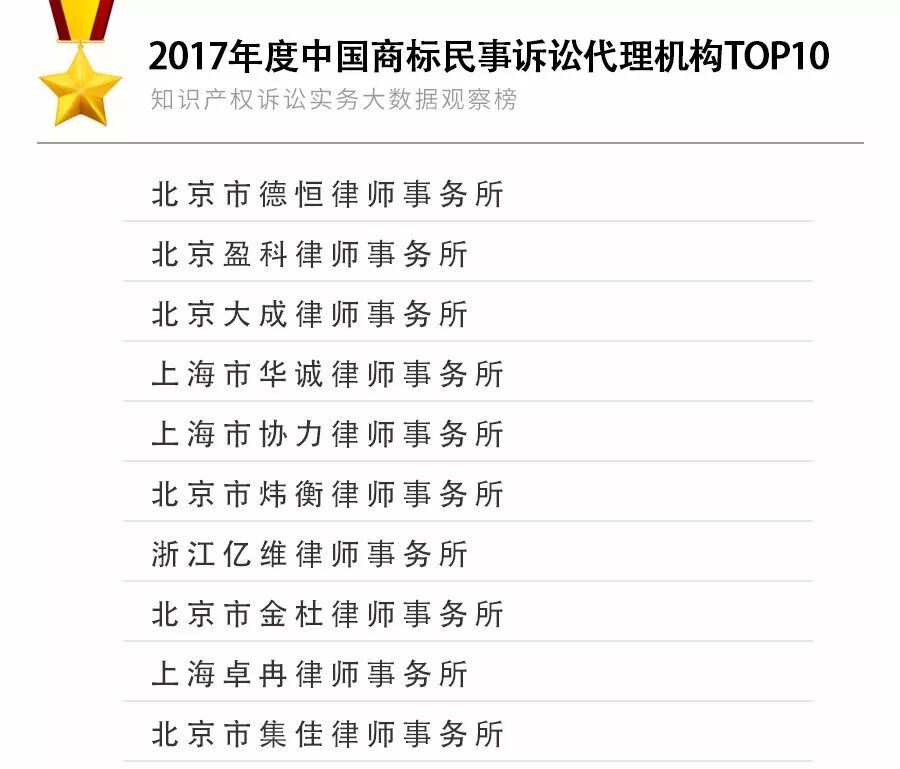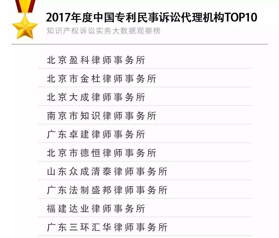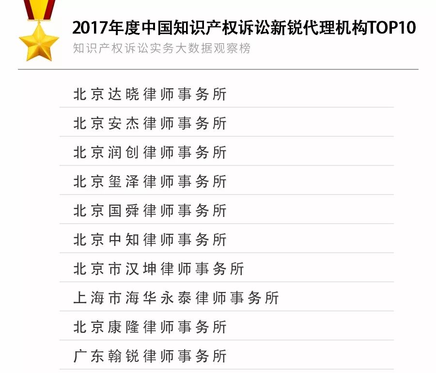 原标题:重磅发布 | 2017年知识产权诉讼实务大数据观察榜TOP10