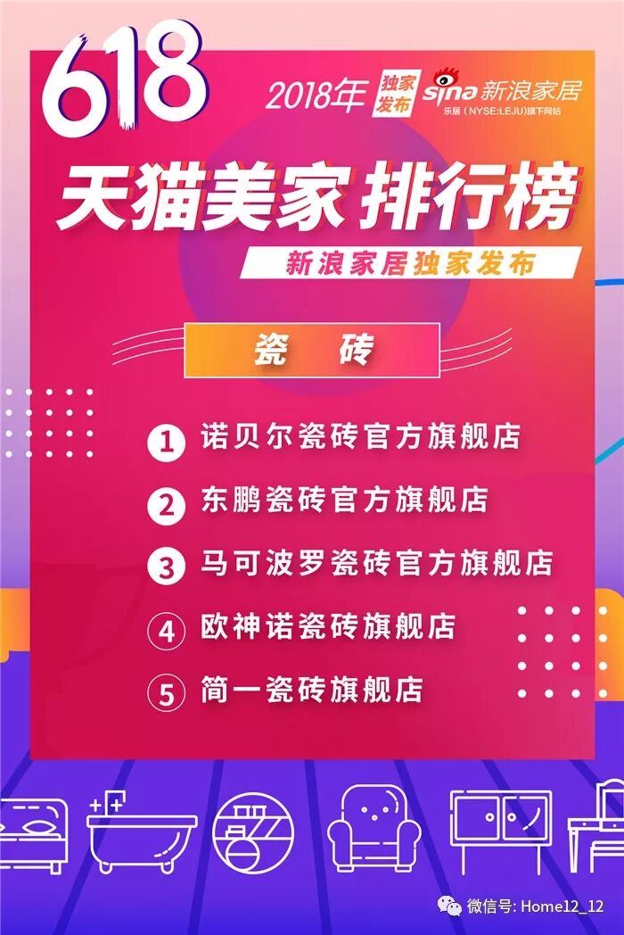 瓷砖品类的排名向来非常激烈,在618大战中,诺贝尔瓷砖官方旗舰店,取得冠军。东鹏瓷砖官方旗舰店下降至第二名,马可波罗瓷砖官方旗舰店、欧神诺瓷砖旗舰店、简一瓷砖旗舰店分别获得第三、四、五名。