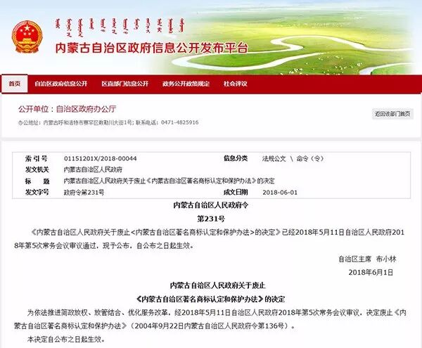 原标题:内蒙古:“著名商标认定和保护”有为企业背书之嫌,决定废止