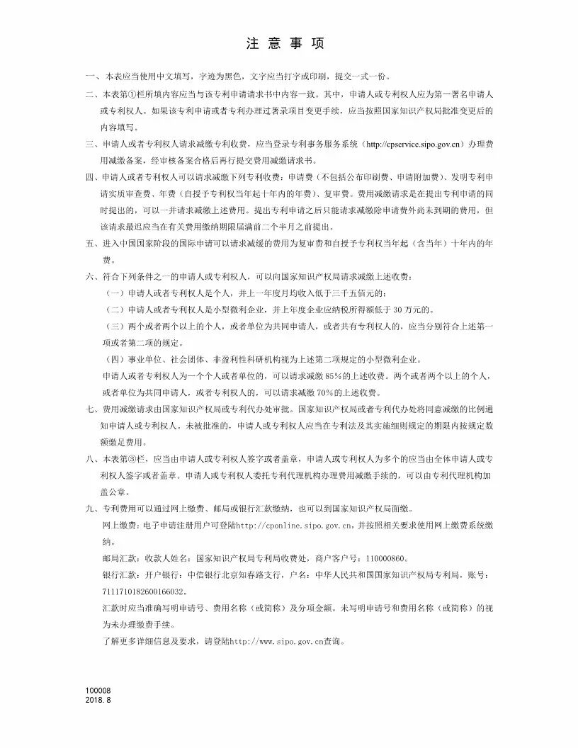 附件:1.费用减缴请求书(申请日后提交适用)