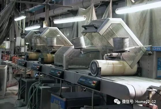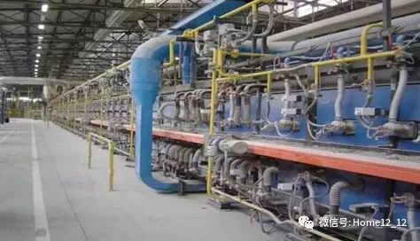▲全长150米的高温窑炉,砖坯从窑炉一端进入经过低温预热、流动持续升温、20—30分钟1200度左右高温烧制、流动持续降温、冷却等过程成品出炉。使釉料充分分解,呈现出最佳颜色,同时1200度高温也使砖坯达到高硬度。