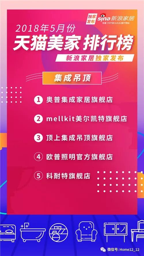 【集成吊顶】随着对家装品质的要求提高,集成吊顶越来越被人们所重视。奥普集成家居旗舰店一直坚持创新和为爱设计的主题,在本月新零售中获得第一名。mellkit美尔凯特旗舰店、顶上集成吊顶旗舰店与奥普共同占据前三,欧普照明官方旗舰店名列第四,科耐特旗舰店进入前五。