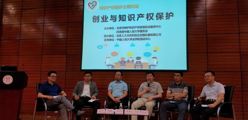近年来,高校创业工作开展的如火如荼,已经成为“大众创业、万众创新”的重要支撑。为进一步提升高校师生创新创业知识产权保护意识,让知识产权成为高校“双创”的助推器,2018年5月31日,由北京市保护知识产权举报投诉服务中心(简称北京12330)和共青团中国人民大学委员会共同主办,北京人大文化科技企业孵化器有限公司承办,中国人民大学法学院培训中心协办的“创业与知识产权保护”主题对话活动在中国人民大学科技园举行。国家知识产权局专利局人事教育部人才工作处处长、北京知识产权法院立案庭法官、中国人民大学理工学科建设处副处长、北京中关村智酷双创人才服务股份有限公司战略合作总监和北京矩视智能科技有限公司CEO作为对话嘉宾,就创业中的知识产权“陷阱”、如何在创业中平衡研发和知识产权保护的关系以及政府和高校可以采取哪些措施提升创业者的知识产权保护能力等创业中的热点难点问题进行了深入的探讨。园区企业知识产权工作负责人和中国人民大学在校师生近100人参加了活动。